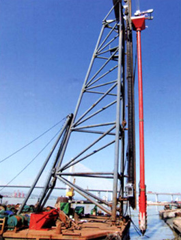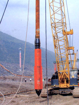 振沖器是振沖法施工中的特制機具。它產生水平向振動力振擠填料及周圍土體,而達到提高地基承載能力、減少沉降量、增加地基穩(wěn)定性、提高抗地震液化能力。 振沖法施工時除原地沖器外,尚需行走式起吊裝置,泵送輸水系統(tǒng),控制操作臺等。如工程單位缺乏起重機,本廠還供應振沖器施工樁架,樁架有單邊滾管立柱式、液壓步履式、簡易履帶式等。